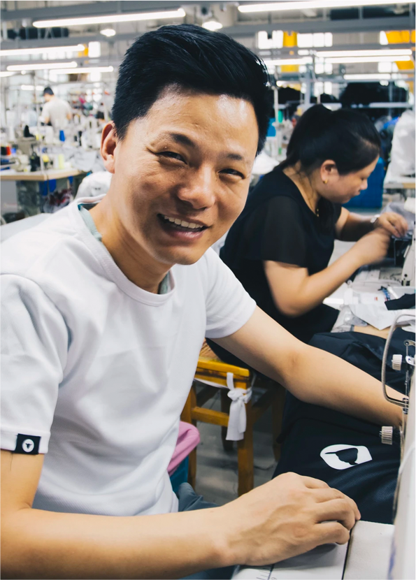 A large proportion of our apparel is produced in China, with support from both the USA and Italy. The reason that we chose our China factory, in the Zheijiang Provence, is because of what we feel are unrivalled skillsets. These are people where the profession of a machinist is well respected, and a legitimate career option. Workers specialise in key components, such as overlocking, flat locking, welding and cutting, with continual learning and development. They are paid above minimum wage and work in conditions that are pristine.